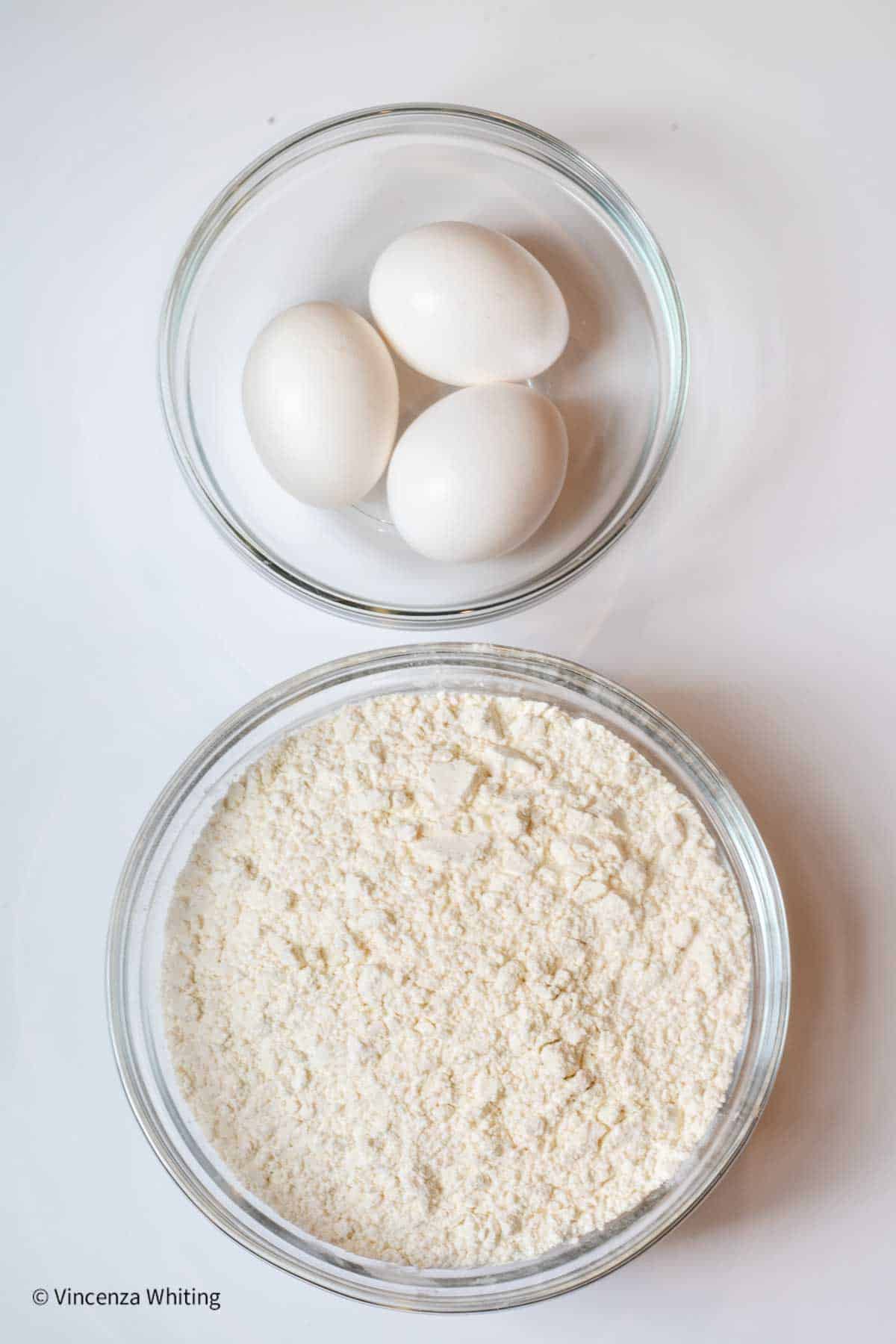- Eggs: Bring the eggs to room temperature so that they blend evenly in the pasta dough.